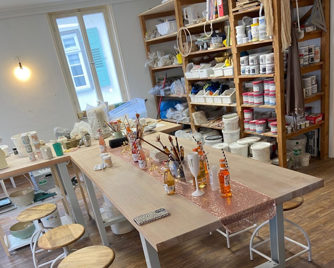 Falls ihr als Gruppe euer privates, exklusives Keramik-Bemal-Event in historischem Ambiente erleben möchtet, könnt ihr auch (nach Rücksprache) unsere Töpferwerkstatt im Obergeschoss buchen.